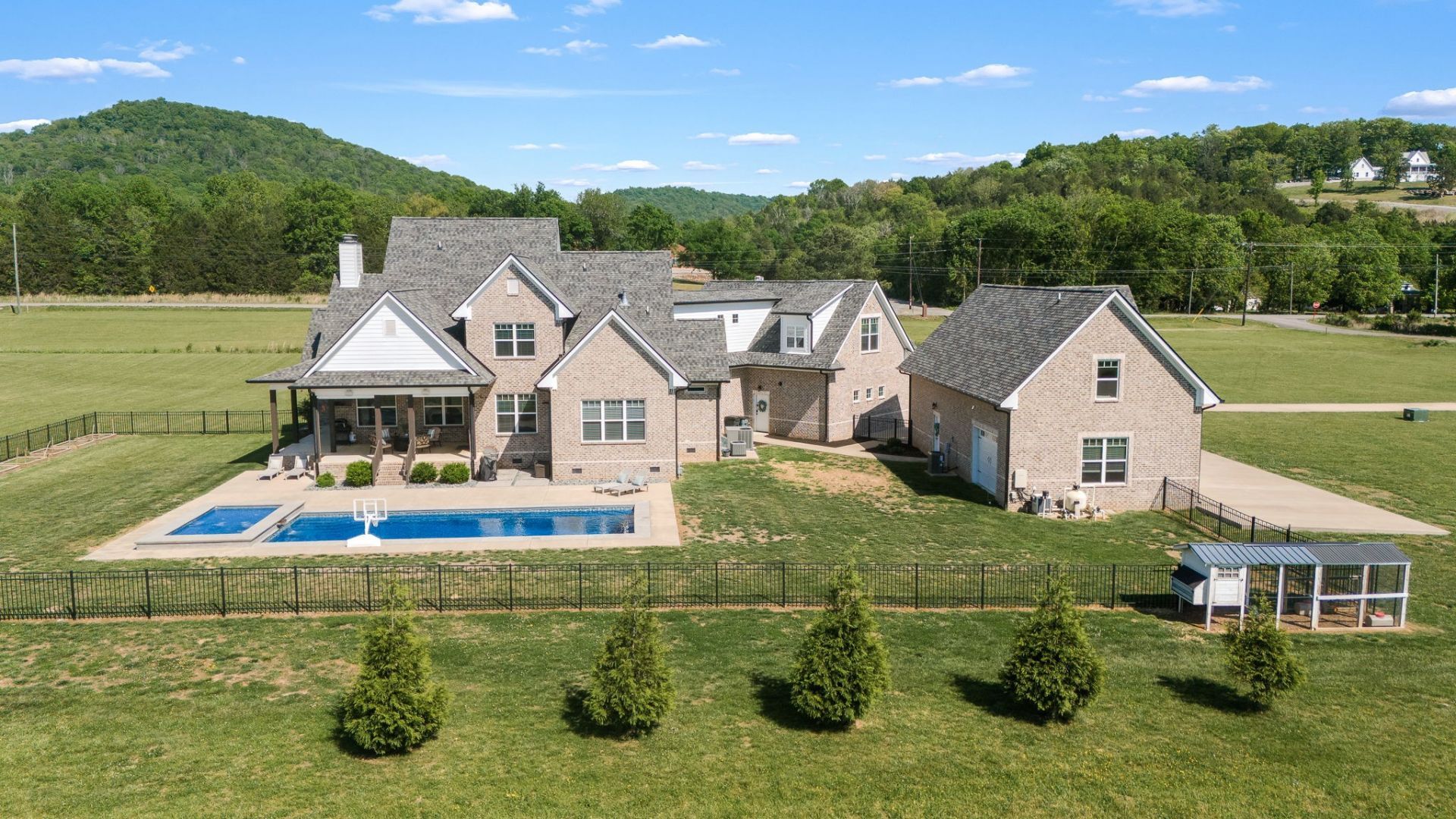Experience luxury estate living in this 4 bed, 4 bath, 4,918 sq.ft home set on 5.66 acres with 6-car garage, heated saltwater pool & spa, plus a detached apartment. This custom home pairs timeless craftsmanship with elevated finishes, featuring European white oak hardwoods, a dramatic stacked stone gas fireplace with Tennessee cedar mantle and built-ins, and a beautifully appointed kitchen anchored by two oversized islands with Northern Italian quartzite, a large walk-in pantry, and a butler's area with wine fridge. The spacious owner's suite is a true retreat with a cathedral ceiling, luxurious bath, Carrara marble double vanities, freestanding tub, walk-in tile shower with waterfall accent and dual shower heads, and a hidden passage to the laundry through a secret room. Designed for flexibility as much as elegance, the home also offers dual flex rooms to accommodate a home office, gym, media space, playroom, or guest needs. Outside, the amenities continue with a fiberglass heated saltwater pool featuring a tanning ledge, spa, and waterfall, plus three covered porches, and extended patio. This home is an auto/outdoor enthusiasts dream with its 6-car garage offering plenty of space for personal and recreational vehicles, three 220V power outlets for the sauna and electric cars, plus a newly renovated 1,008 sq.ft detached accessory dwelling unit, perfect for multi-generational living.This property is a rare opportunity for buyers seeking privacy, luxury, resort-style outdoor living, and functional everyday comfort.